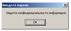 {Application->MessageBox("Защита конфиденциальности информации","Введите пароль",MB_OK);