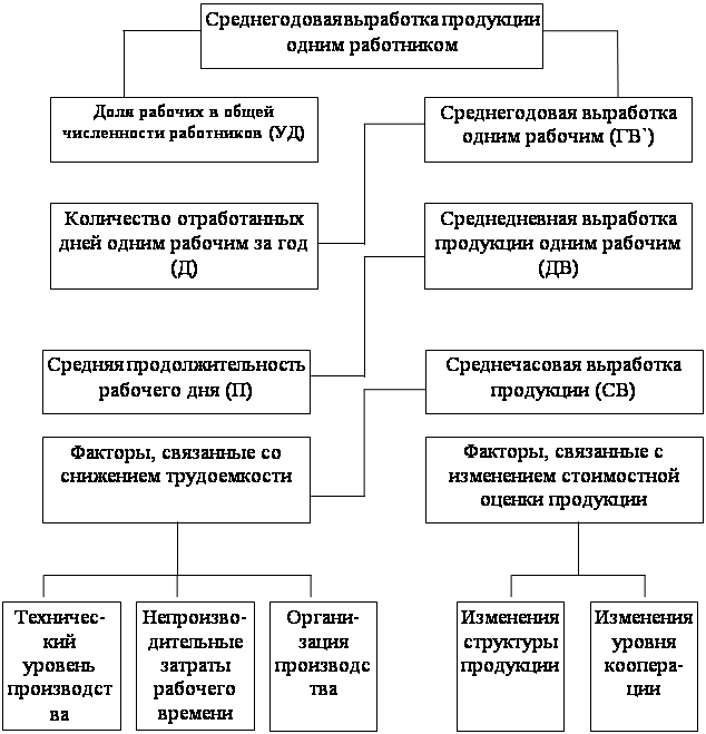 Рисунок 1.1 – Взаимосвязь факторов, определяющих среднегодовую выработку продукции работника предприятия