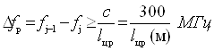 где Djj=2plцрfj/с - сдвиг фазы сигнала на частоте fj многочастотного сигнала относительно фазы сигнала от отражающего центра цели; lцр — радиальная протяженность цели. Подставив значение Djj и Djj-1, в выражение ( 3), найдем величину необходимого разноса частот