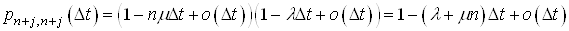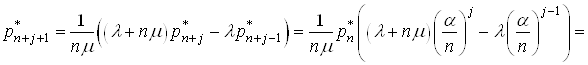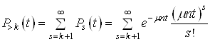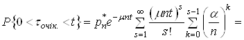 Далі, продовжуючи аналогічні міркування, можна записати таку формулу для ймовірності обслуговування за час ![]()