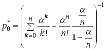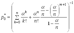 . З точки зору практичного використання цієї умови необхідно, щоб середня кількість заявок, які надходять до системи за середній час обслуговування однієї заявки одним каналом, була строго меншою ніж кількість каналів. Тоді формула (21) спрощується: