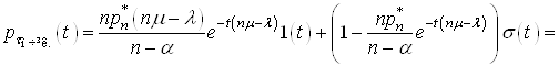 – щільність розподілу випадкового часу очікування обслуговування, що обчислюється за формулою (38), а