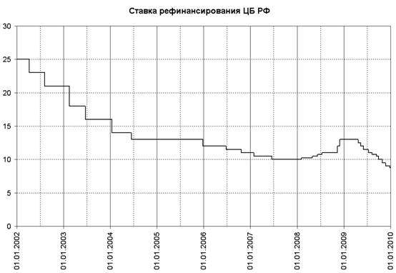 3. История изменения ставок рефинансирования Центрального Банка Российской Федерации