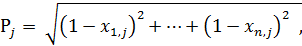 х1,j,…,xn,j – стандартизированные показатели j-го предприятия.