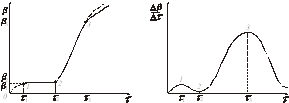 Частіше – це криві лінії, що мають S-образну форму (сигмоіда по Дельмону). На початковій ділянці 0 – 1 кривої рис. 1 швидкість перетворення (Δ β/Δτ)1 = β1 /τ1 досить висока (рис. 2.), оскільки перетворення протікає на вихідній поверхні. Потім швидкість перетворення сповільнюється й в індукційному періоді (ділянка 1 – 2 ) воно протікає із середньою швидкістю (Δβ/Δτ)2 = (β2-β1)/(τ2-τ1). У період прискорення (ділянка 2 – 3 ) швидкість перетворення найбільша (Δβ/Δτ)3 = (β3-β2)/(τ3-τ2). За цим періодом випливає період спаду швидкості перетворення (від значення β у т. 3 до значення β = 1). Усі ці ділянки одночасно представляються тільки на теоретичному графіку.
