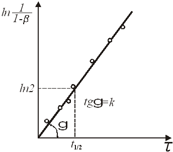При побудові графічних залежностей lg (1/(1-β)) від lgτ знаходять К и п. У результаті перетворення рівняння (21) одержуємо: