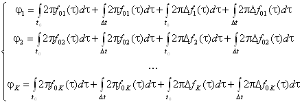Соотношение (6) показывает, что отклонения фаз сигналов, соответствующих каждому из