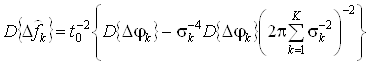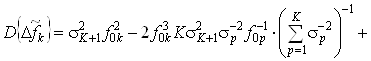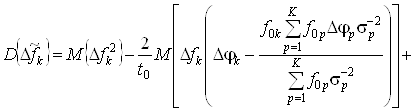 . В силу того, что математическое ожидание нескомпенсированного отклонения частоты k-го генератора, определяемое выражением (43), равно нулю, определим дисперсию нескомпенсированного отклонения частоты k-го генератора для данного случая. Перепишем выражение (43) с учетом заданных исходных данных: