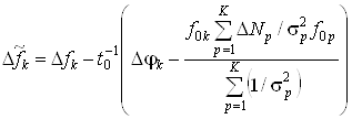 Перепишем выражение (40), раскрыв значение оценки отклонения частотыk-го генератора с использованием соотношения (21):