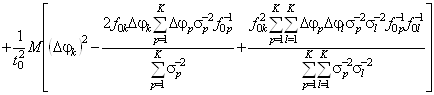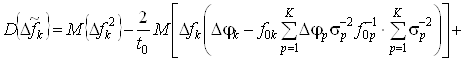 Запишем выражение для нахождения дисперсии нескомпенсированного значения отклонения частоты k-го генератора в виде:
