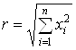 , i – номер измерения в выборке X. Если представим n-мерное пространство, в котором на каждой оси координат отложим соответствующие по номеру измерения, то вся выборка будет соответствовать точке этого пространства или вектору, конец которого лежит в этой точке. Длина вектора в данном пространстве может быть представлена так: