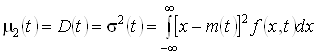 и характеризует степень разбросанности значений относительно математического ожидания или, иначе, среднюю мощность переменной составляющей процесса, выделяемой на сопротивлении в 1 Ом. Очевидна связь между начальными и центральными моментами: