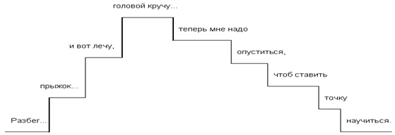 Это упражнение способствует развитию гибкости голоса. Учитель просит ребят представить себе, что они смотрят по телевизору соревнования по прыжкам в высоту. Прыжок спортсмена всегда повторяют в замедленном виде, поэтому движения прыгуна более плавные. Нужно попытаться нарисовать голосом линию прыжка. Голос должен свободно и легко подниматься и опускаться (рисунок 1).