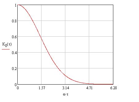 В общем случае нормированная корреляционная функция, учитывающая разлет элементарных отражателей в облаке, вращение антенны и движение носителя РЛС, имеет график, представленный на рис. 1.