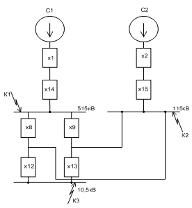 Расчет токов короткого замыкания производим в относительных единицах. Базисную мощность принимаю Sб=1000 МВА.