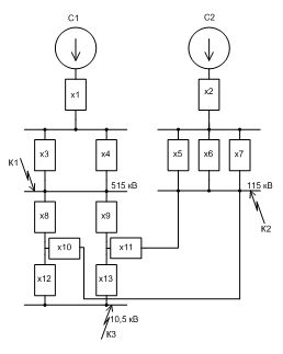 | Точки К.З. | К-1 | К-2 | К-3 |