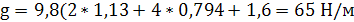 Сила тяжести 1метра токопровода с учётом массы колец 1,6 кг, массы 1метра провода АС-300/39 1,132 кг, провода А-300 0,794 кг по табл. 7-29, 7-30 в (2):