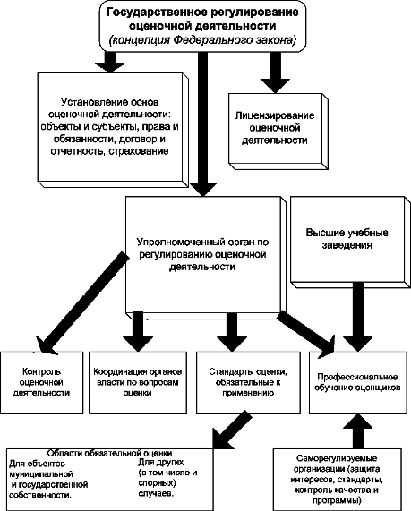Согласно Концепции развития оценочной деятельности в русской Федерации Концепция развития оценочной деятельности в РФ одобрена Межведомственным советом по вопросам регулирования оценочной деятельности в русской Федерации. Утверждена Распоряжением Правительства русской Федерации № 369-p 6 апреля 2000 г. Основными механизмами регулирования оценочной деятельности являются: