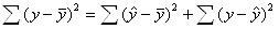 первая сумма- общая сумма квадратов отклонений результативного признака от среднего уровня. Вторая сумма – сумма квадратов отклонений, объясненная регрессией (факторная).третья сумма- остаточная сумма отклонений, необъясненная часть.
