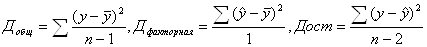 Сопоставляя факторную и остаточную дисперсии в расчете на одну степень свободы получаем величину F критерия