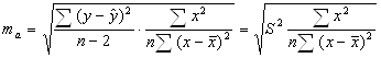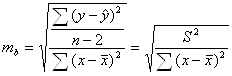 S- остаточная сумма квадратов на одну степень свободы или остаточная дисперсия. Величина стандартной ошибки совместна с t- распределением Стьюдента, поэтому для оценки существенности параметра b его величина сравнивается со стандартной ошибкой и вычисляется значение