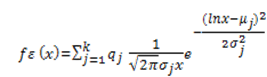 Распределение населения j-й страты по величине среднедушевого дохода с, описывается логарифмически-нормальной плотностью, вида: