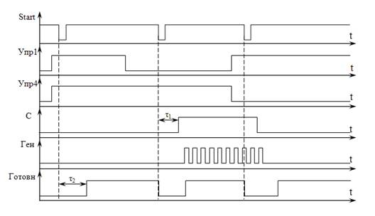 τ2 – задержка формирования сигнала готовности к приему нового управляющего числа, сформированная линией задержки (τ2 > τ1).