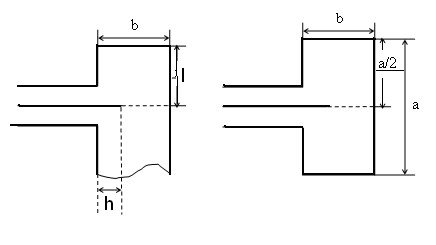 Ширина диаграммы направленности пирамидального рупора вычисляется приближенно по формулам (на уровне половинной мощности):