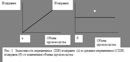 К переменным обычно относят затраты на сырье и материалы, топливо, энергию, транспортные услуги, часть трудовых ресурсов, т.е. те издержки, уровень которых изменяется с изменением объема производства (рис. 1а).