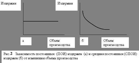 Что касается средних постоянных издержек (на единицу продукции), они снижаются с ростом объема производства и увеличиваются при его снижении (рис. 2 б).
