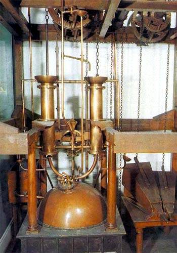 Через неделю после смерти И. И. Ползунова, 23 мая (5 июня) 1766 г., начались официальные испытания первого в мире теплового двигателя. В первый же день испытатели пришли к заключению, что машина может приводить в движение мехи для подачи воздуха к 10-12 печам. Построенный Ползуновым крупный двигатель значительно отличался по конструкции от той машины, которая была описана им в первоначальном проекте 1763 г. Передача движения к машинам, которые должен был обслуживать двигатель, осуществлялась с помощью балансиров. Цепи, соединяющие поршни двигателя с балансирами, для большей прочности изобретатель сделал из отдельных железных стержней и шарнирными, такого типа, какие известны теперь как «цепи Галля». Питание котла подогретой водой было автоматизировано. Ползунов придумал простой механизм, обеспечивавший сохранение воды в котле на одном уровне во время работы двигателя. Это упрощало труд людей, обслуживающих машину. Это был первый в истории техники автоматический регулятор промышленного назначения И.И. Ползунова, реализующий принцип регулирования по отклонению регулируемого параметра - основной принцип теории управления.