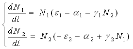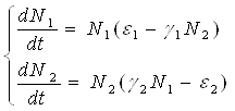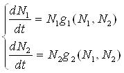 соответственно для жертвы и хищника. С учетом сделанных предположений систему уравнений (2.1) перепишем в виде: