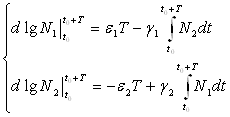 — коэффициенты естественного прироста (или смертности) популяции;