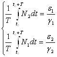 , т. е. коэффициент истребления жертвы меньше коэффициента ее естественного прироста. В этом случае также будут наблюдаться периодические колебания численности. Вычислим средние значения численностей: