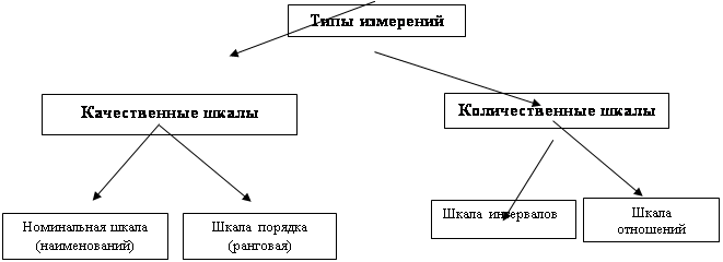В исследованиях применяют классификацию шкал, предложенную С.Стивенсоном (см. рис. 1), согласно которой четыре основных способа измерения, связанные с различными правилами, называют измерительными шкалами (номинальная, порядковая, интервальная и шкала отношений).