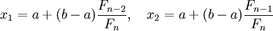 , а друга точка х2 – золотим перерізом відрізка
