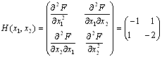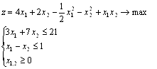 являється вгнутою так як представляє собою суму лінійної функції (її можна розглядати як вгнуту) і квадратичної форми, яка являється від’ємно визначеною і тому також являється вгнутою. Перевіримо завдяки матриці Гессе від’ємну визначеність функції