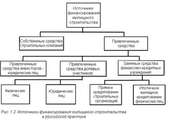 С учетом рассмотренной ситуации целесообразно определить, какими возможностями располагают строительные предприятия при определении источников финансирования своей текущей деятельности в России. Источники финансирования жилищного строительства в России можно представить в следующем виде (рис. 1.2):