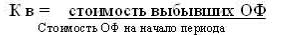 Коэффициент выбытия - это отношение стоимости выбывших за отчетный период основных производственных фондов к стоимости всех основных производственных фондов на начало отчетного периода