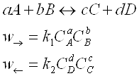 Швидкість такої реакції по одному з реагентів дорівнює алгебраїчній сумі швидкостей елементарних стадій, в яких ця речовина приймає участь.