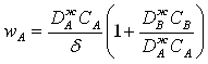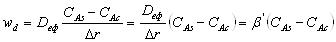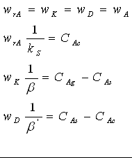 Нехай межа шару зі зниженою, у порівнянні з газовим потоком, концентрацією реагенту А знаходиться на відстані δ від твердої частинки, таким чином навколо твердої частинки існує плівка речовини А. Переніс речовини А з газового потоку до поверхні через граничну газову плівку здійснюється за рахунок конвекційної дифузії, для визначення швидкості якої користуються рівнянням: