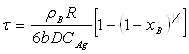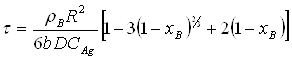 Якщо відомо, яка зі стадій процесу є лімітуючою доцільно проводити розрахунки реакторів використовуючи нижченаведені залежності між часом перебування частинок в реакторі та ступенем перетворення твердого реагенту.