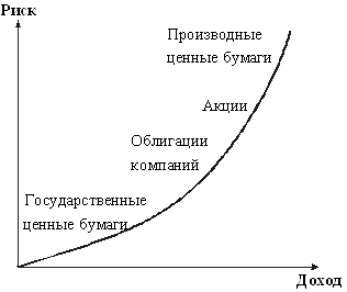 Важным классификационным признаком для ценных бумаг является уровень риска. По уровню риска виды ценных бумаг располагаются следующим образом (рис.1.1). То есть чем выше доходность, тем выше риск; чем выше гарантированность ценной бумаг, тем ниже риск и доходность. (23;253)