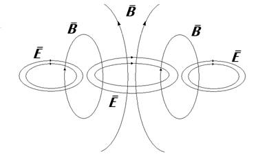 Процес взаємного породження магнітного й електричного поля повинен безупинно тривати й захоплювати усі нові й нові області в навколишньому просторі. Процес взаємного опородження електричних і магнітних полів відбувається у взаємно перпендикулярних площинах. Електричні й магнітні поля можуть існувати в речовині й у вакуумі, і можуть поширюватися у вакуумі. Умовою виникнення електромагнітних хвиль є прискорений рух електричних зарядів. Так, зміна магнітного поля відбувається при зміні струму в провіднику, а зміна струму відбувається при зміні швидкості зарядів. Отже, електромагнітні хвилі повинні виникати при прискореному русі електромагнітних зарядів.