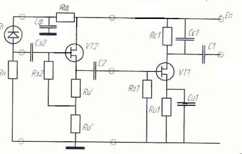 2. Разработать принципиальную электронную схему предварительного усилителя, обеспечивающую согласование с приемником по сигналу. Обеспечить коэффициент усиления предусилителя в диапазоне 10 – 100.
