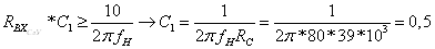 мкФ - обеспечивает связь с последующими каскадами, сигнал должен передаваться без искажений