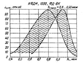 Определим значения относительной спектральной чувствительности фотодиода ФД – 8к, для этого мы провели «среднюю» линию и приблизительно нашли значения
