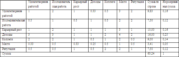| Удовлетворение работой | Исследовательская работа | Карьерный рост | Доходы | Коллеги | Место | Репутация | |