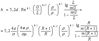 Одна из сложностей заключается в отсутствии обобщенных закономерностей для расчета кинетических коэффициентов процесса ректификации. В наибольшей степени это относится к колоннам диаметром более 800 мм с насадками и тарелками, широко применяемым в химических производствах. Большинство рекомендаций сводится к использованию для расчета ректификационных колонн кинетических зависимостей, полученных при исследовании абсорбционных процессов.