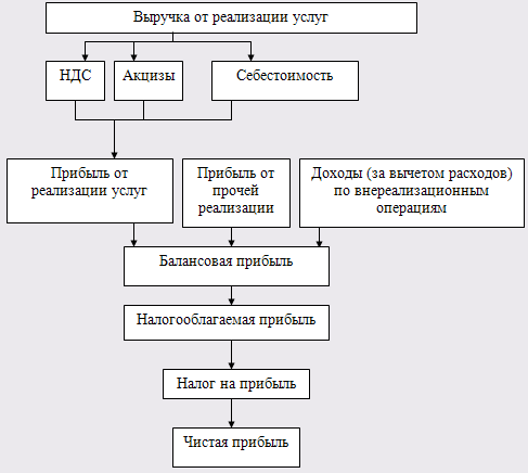 После выполнения расчетов по всем трем этапам определяется прибыль от оказанных услуг.